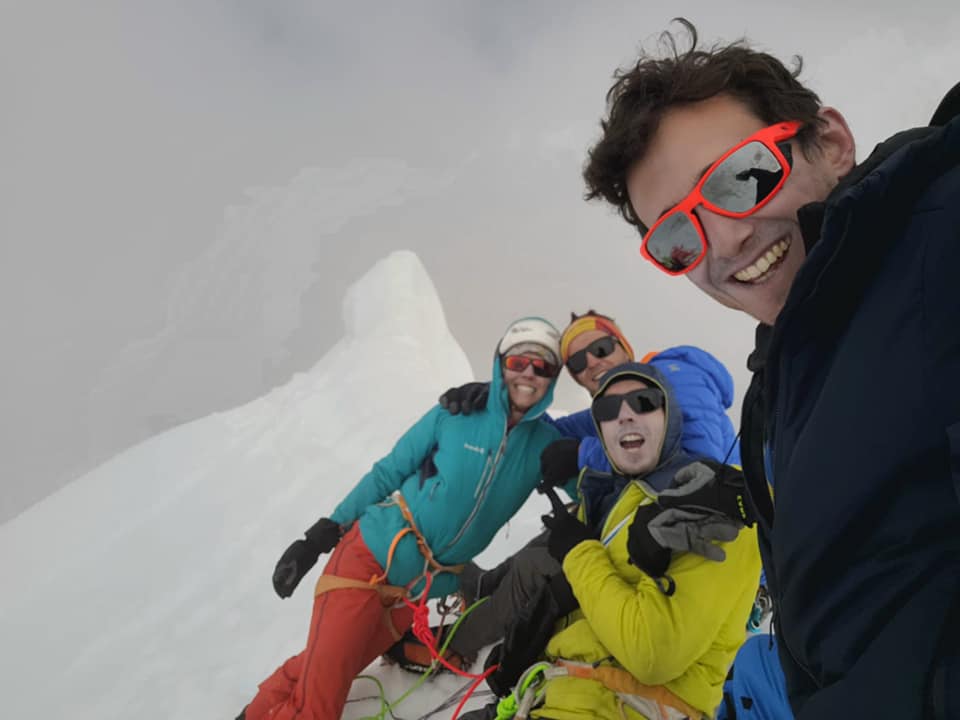 Gabriel Miloche, Louis Pachoud et Anouk Félix-Faure accompagnés de Thomas Arfi au sommet du Cholatse.