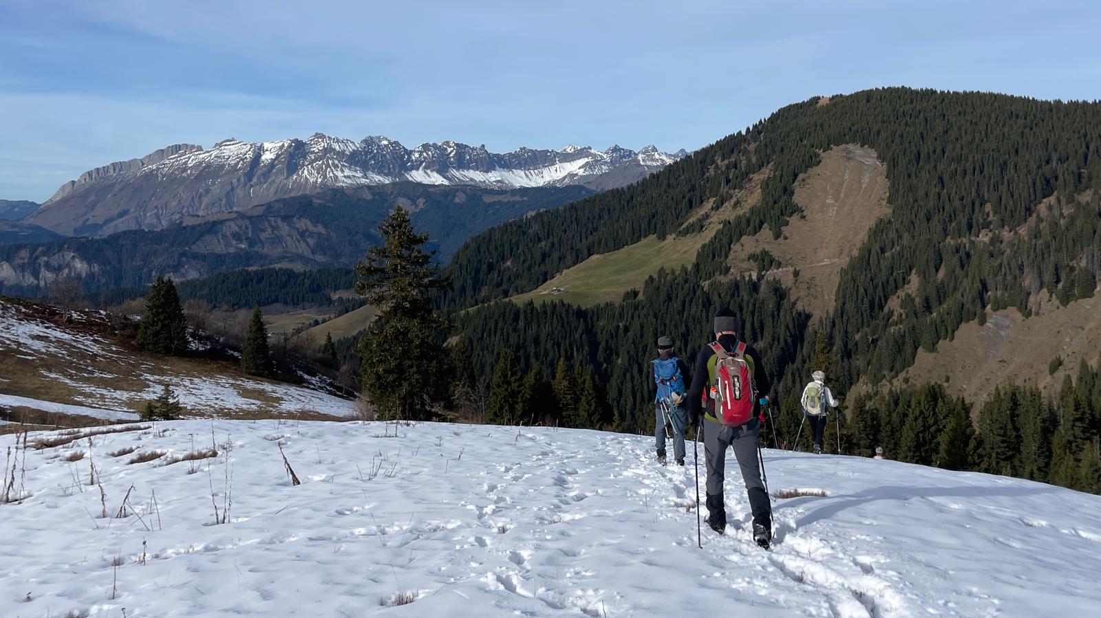 Le parcours nous conduit ensuite au Mont Vorès le sommet de l'arc de crêtes que nous allons parcourir. La neige est bien gelée depuis son apparition et nous marchons facilement.