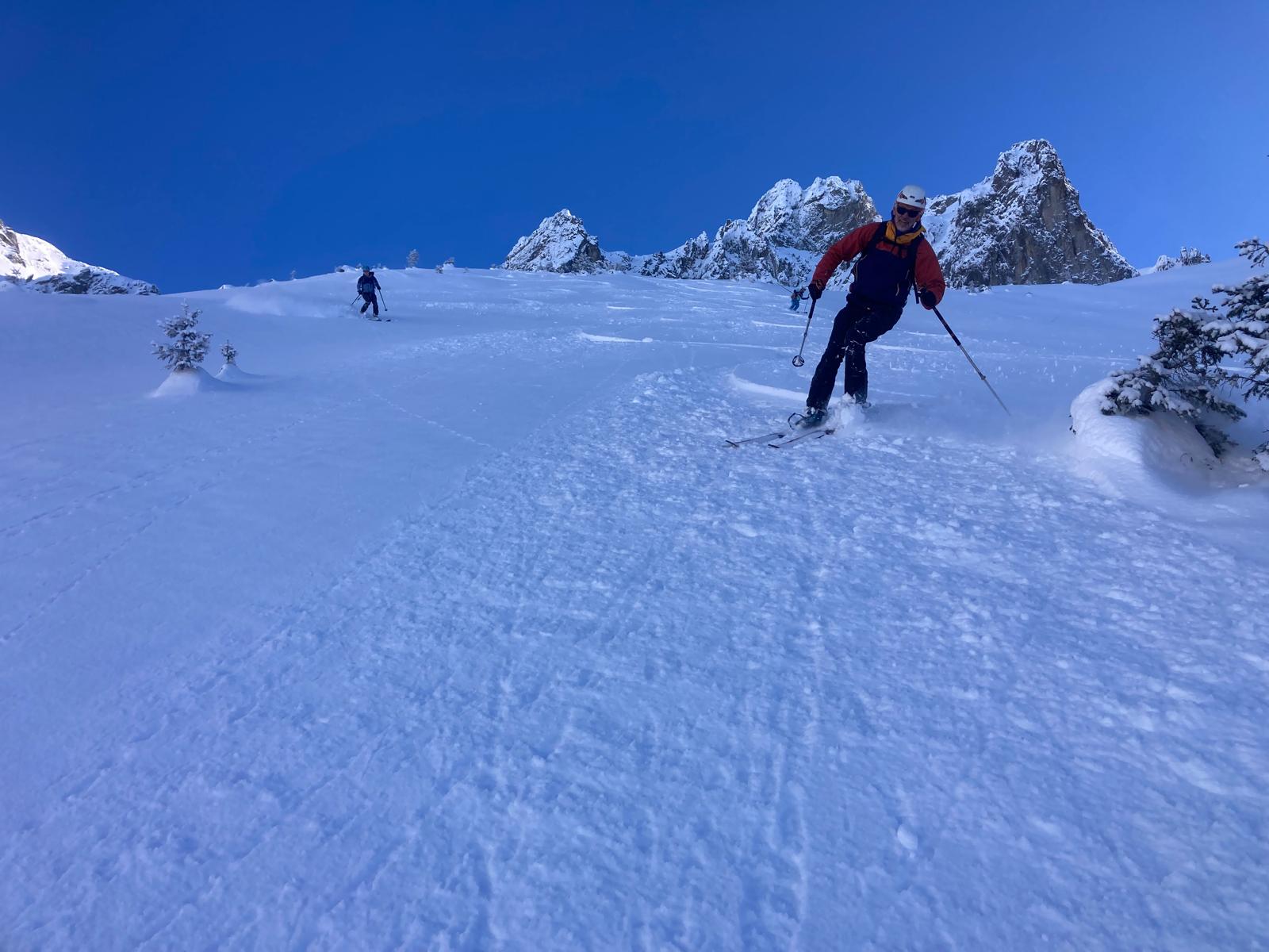 Difficile de s’arrêter : à chaque pause, les pentes du bas nous attirent irrésistiblement.