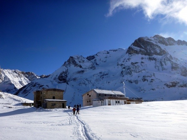 Un peu de remontée mécanique... Et enfin la Grande Casse en vue... La bière n'est pas loin ! Le refuge du col de la Vanoise, du personnel bien sympa, le gardien connait très bien la montagne. Un petit plus pour ce refuge au printemps : il permet d'entretenir la forme, la nuit, pour ceux qui rendent visite aux toilettes, 2 étages à descendre et bien sûr à monter:) certains ont fait du dénivelé en plus !