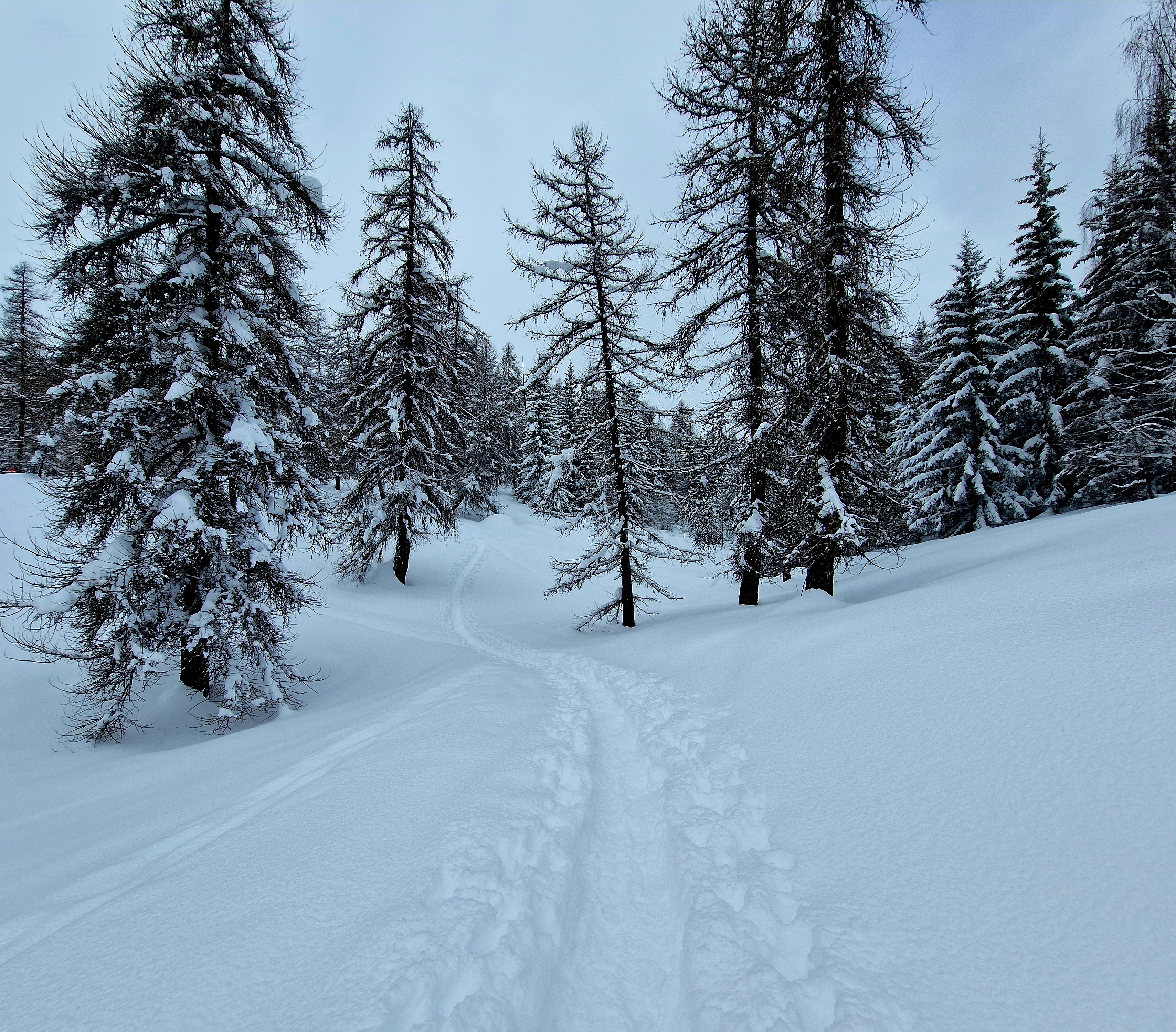 Traces dans le mélézin