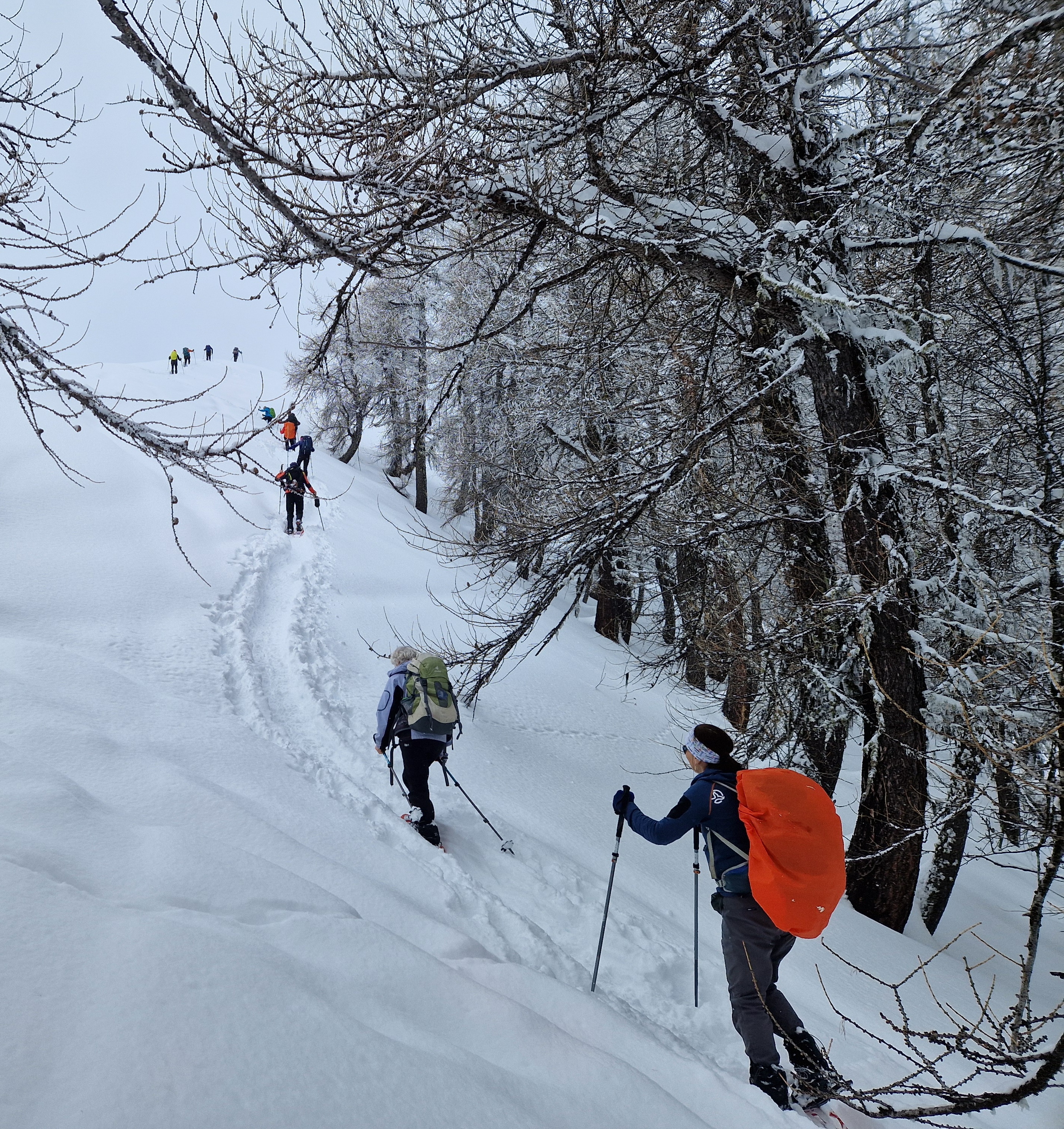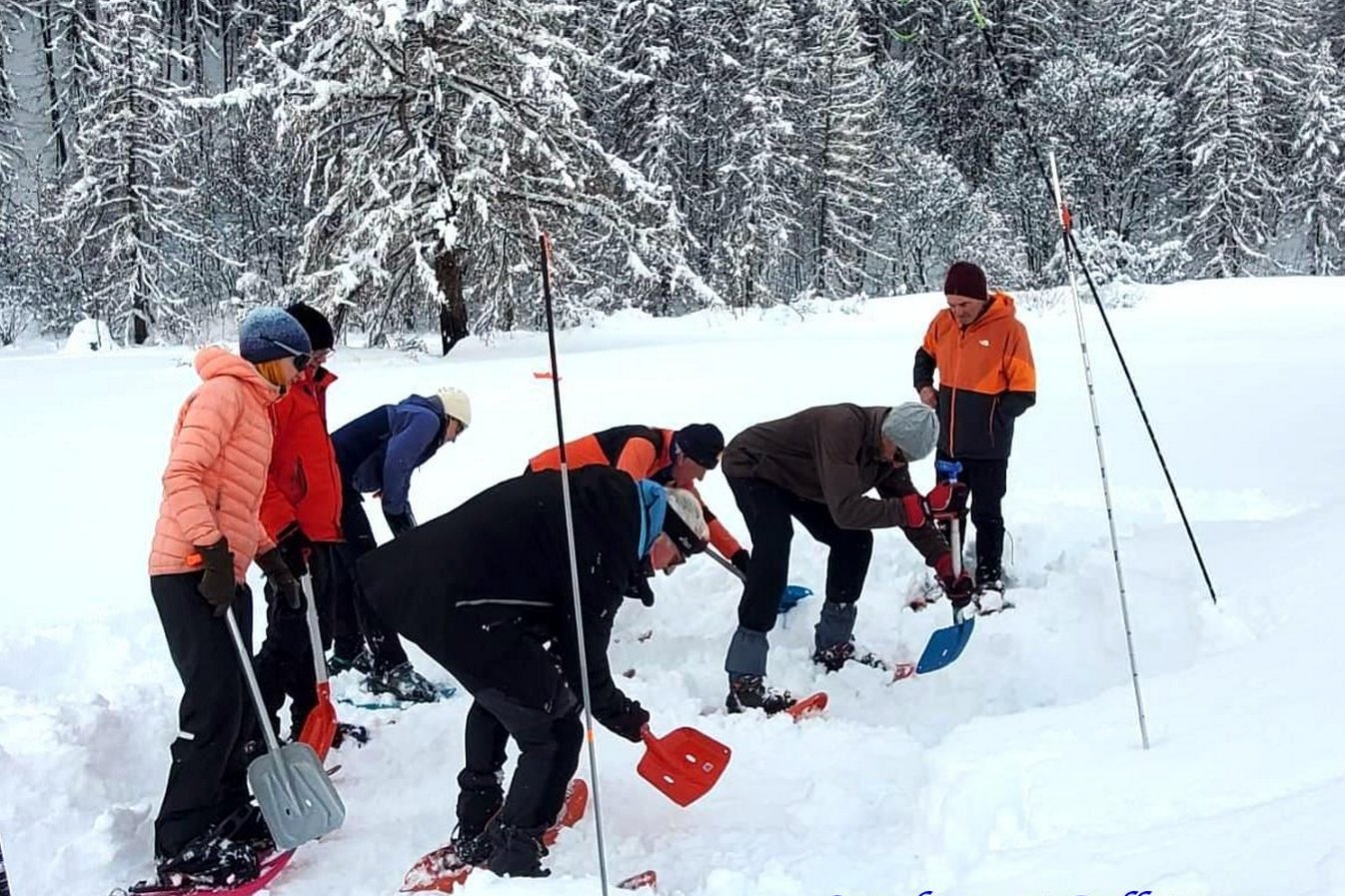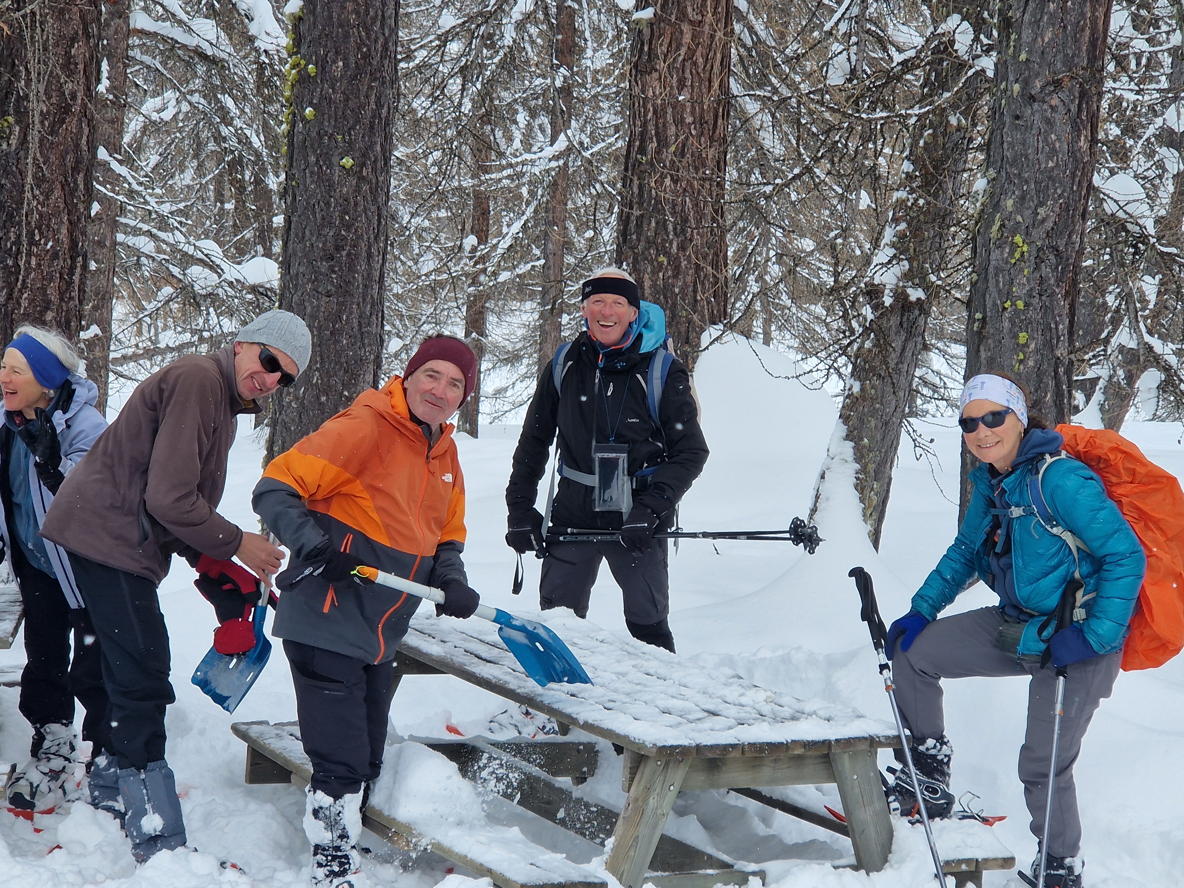 Et surtout, un groupe homogène fluide, fort de 3 encadrants, toujours prêt à tracer ou à faire des exercices de sécurité et avide d'apprendre à gérer des conditions d'enneigement exceptionnelles et un risque d'avalanche fort.