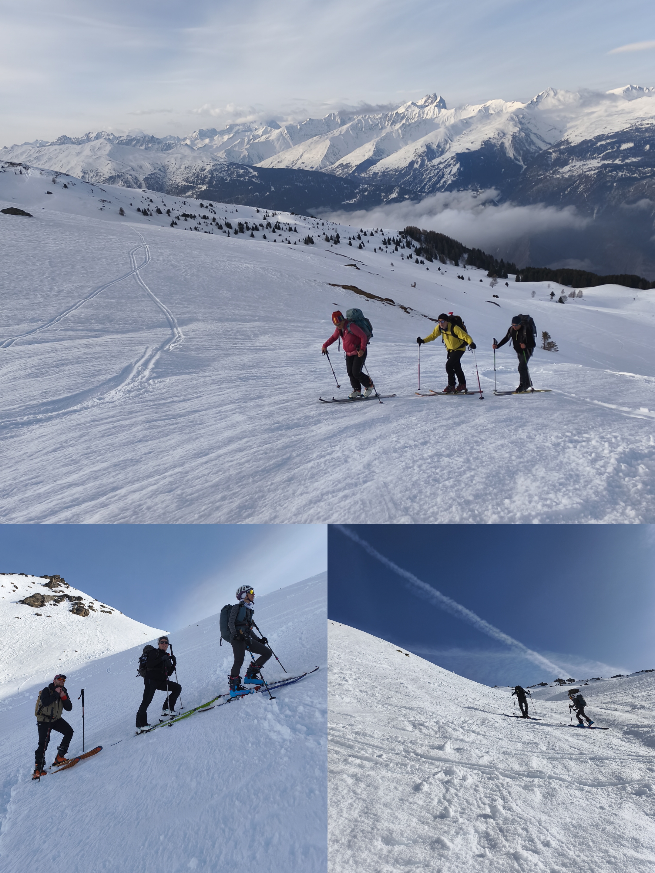 A l'altitude 2450m et devant une pente un peu glacée, presque tout le groupe met ses couteaux, et travaille ses conversions…