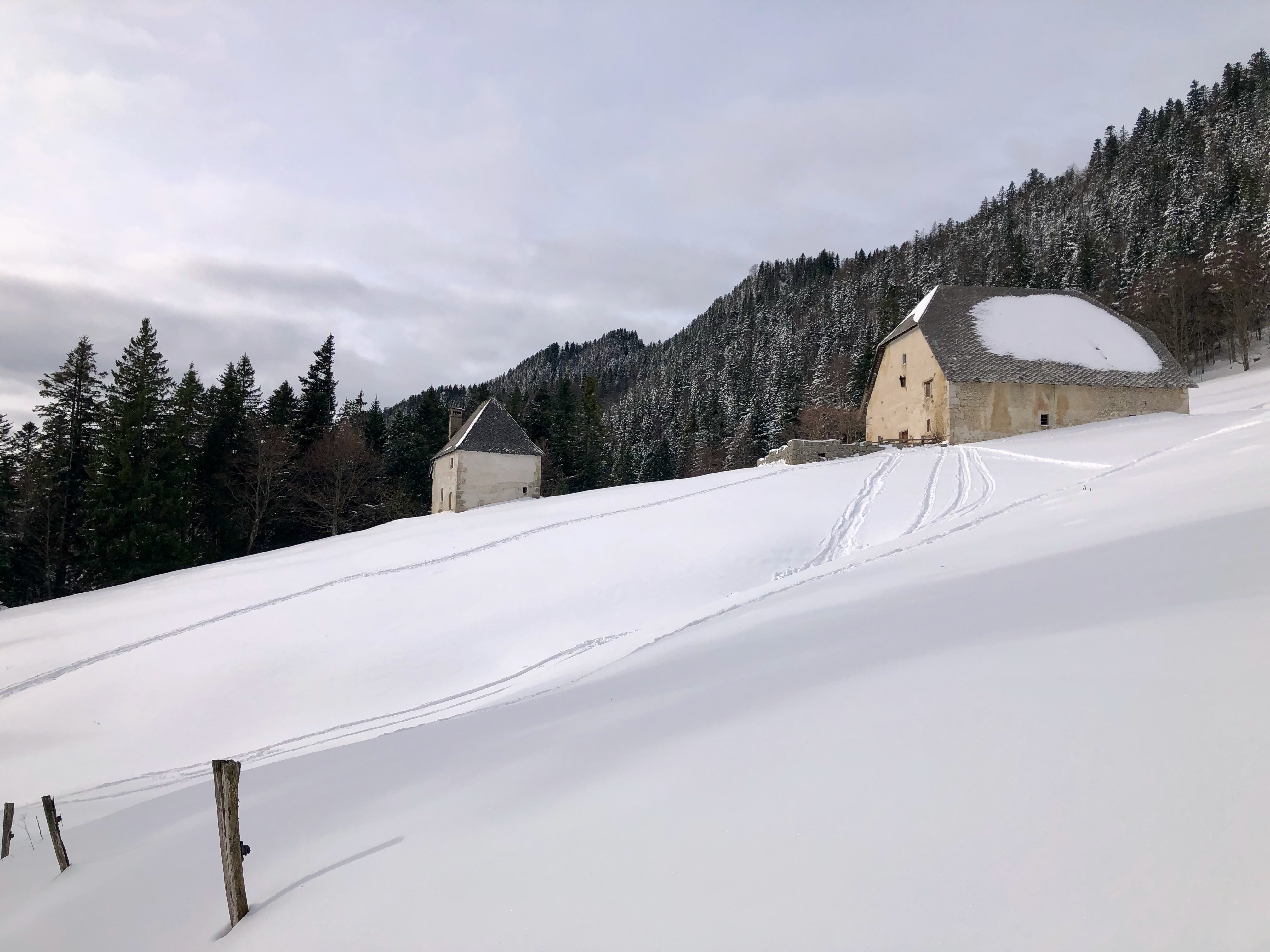 Au habert, nous poursuivons en direction de la jolie Prairie de la Folie. Son accès nous donne du fil à retord. En effet, nous brassons à n’en plus finir au milieu de congères accumulées par le vent.