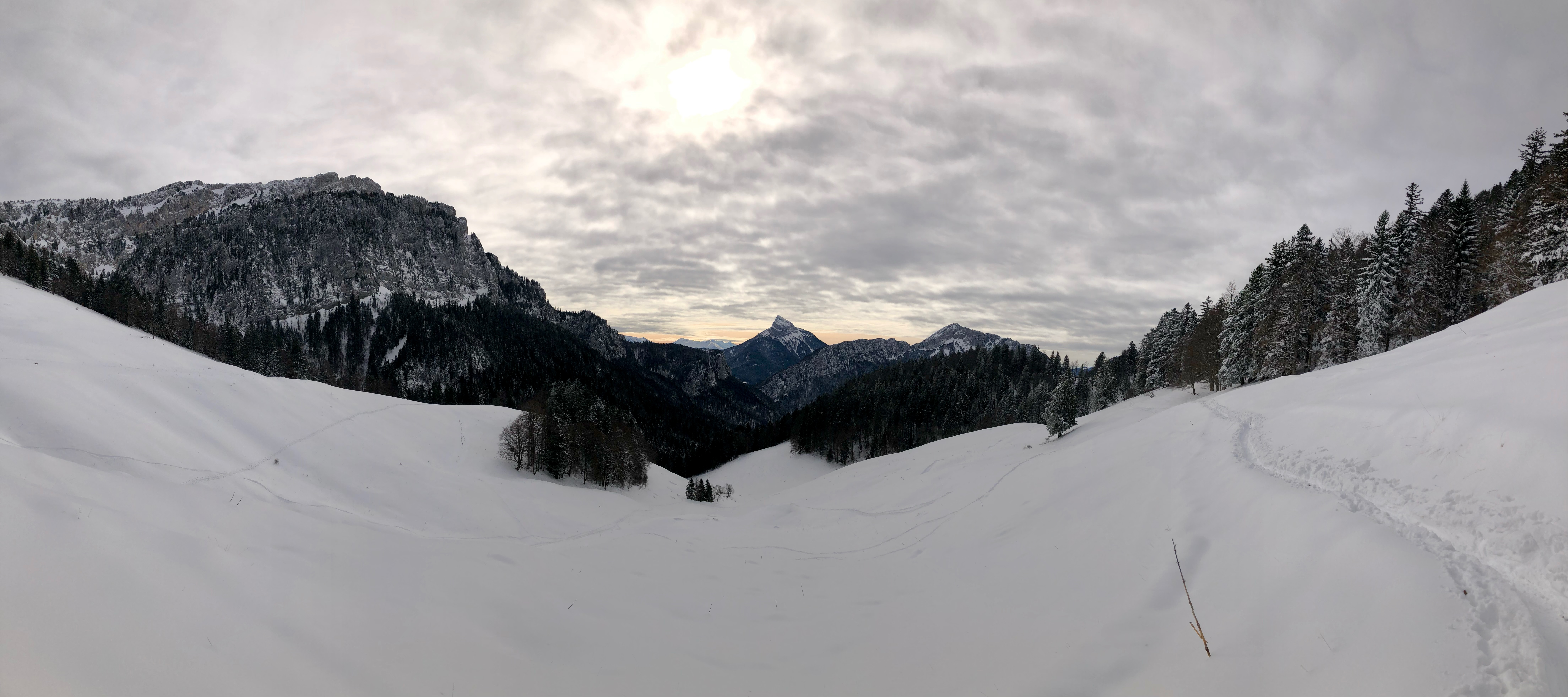 Arrivée au col de la Ruchère (1418 m), nous rencontrons les premières personnes de la journée. Nous en profitons également pour déjeuner avant de parcourir les belles pentes de la prairie du col. La neige malheureusement a transformé et elle forme quelques bottes sous nos semelles. Malgré tout, nous parvenons à réaliser quelques génuflexions de telemark en l’honneur des moines des lieux.
