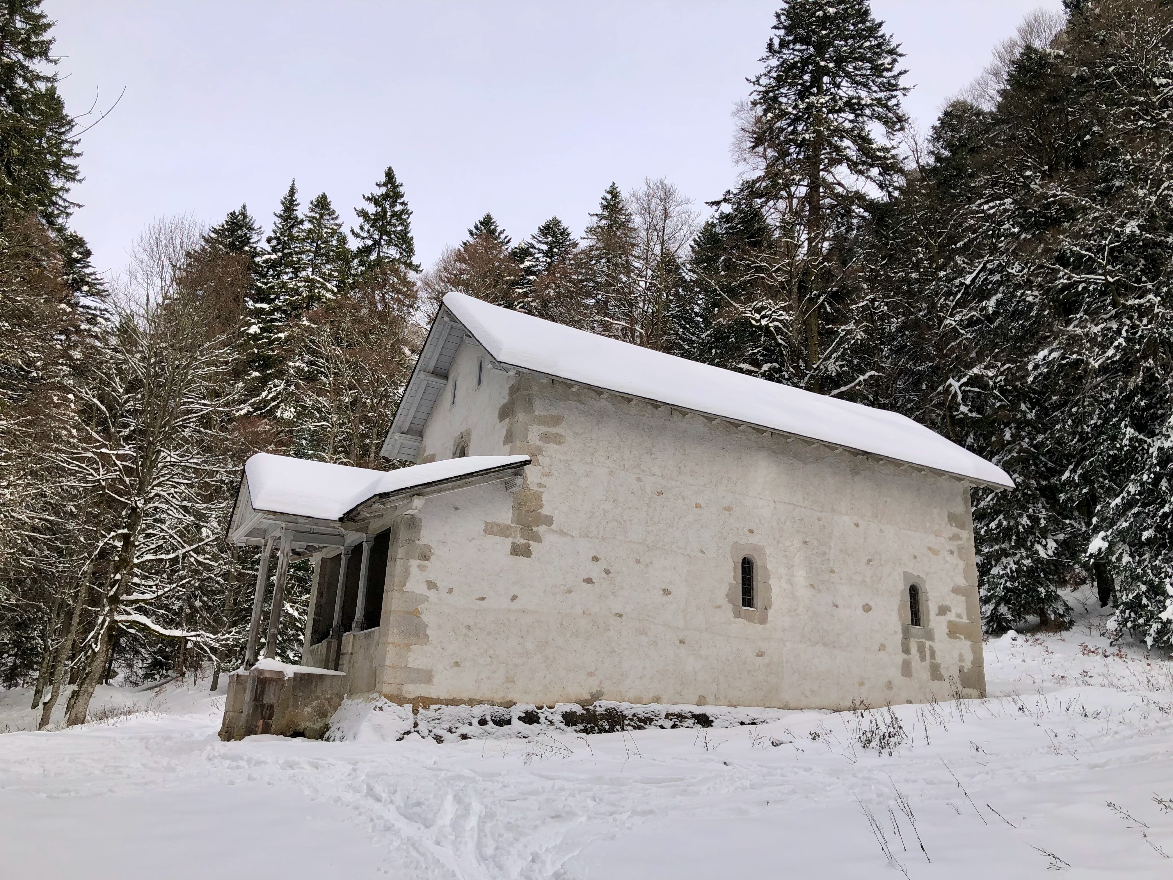 A 9h, nous sommes sur le parking du Pont des Allemands, à quelques hectomètres du musée de la Corderie. La neige est effectivement bien là en quantité. Nous chaussons les skis et partons tout guilleret en direction du monastère. L’ambiance est féérique. Noël approche, mais le cadeau est déjà là ! Les conifères, malgré le vent de la veille, ont encore les branches chargées.