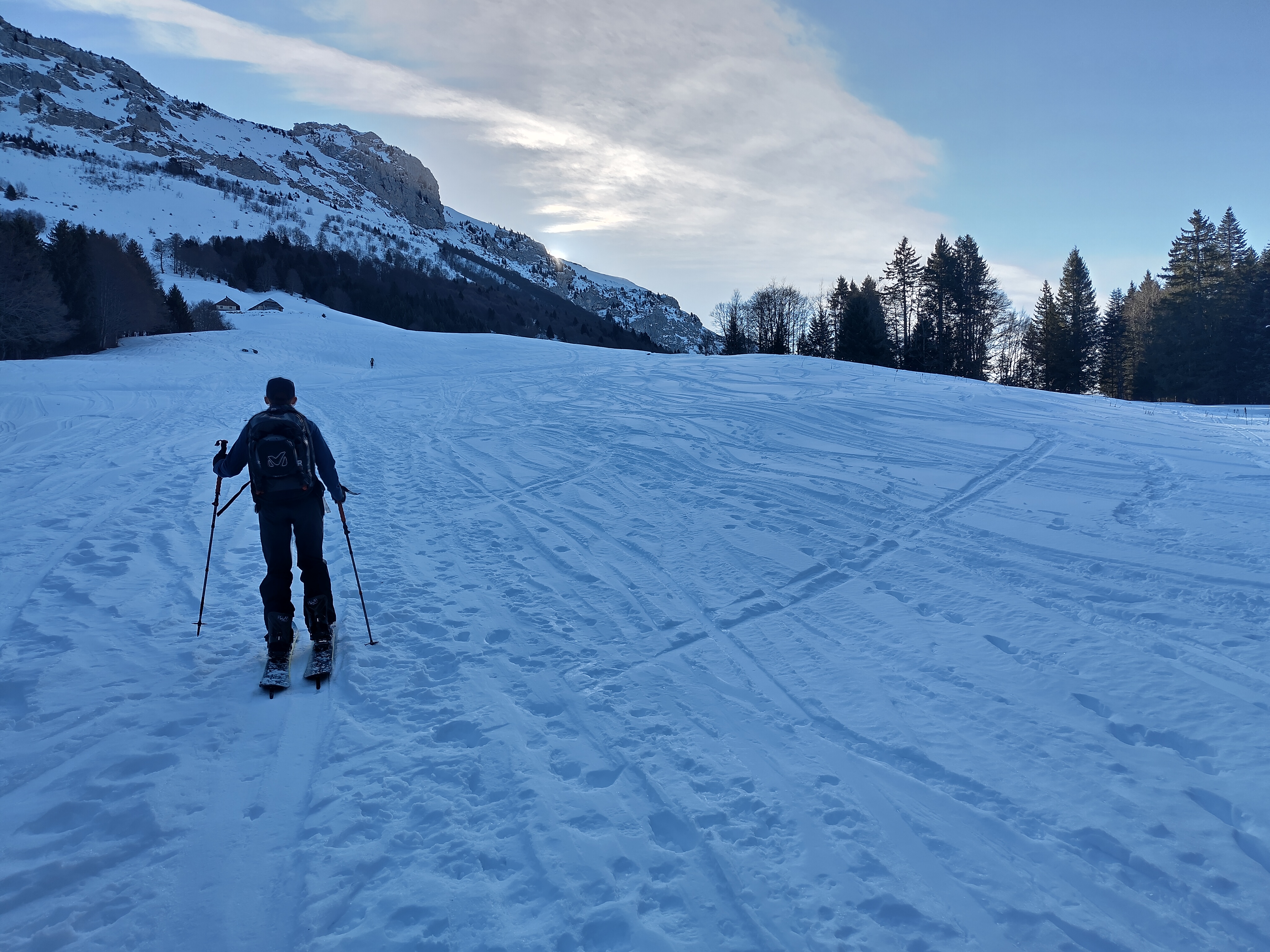 La redescente s’opère au plus près des sapins, à la recherche de la meilleure neige. Elle est rarement très légère, souvent un peu croutée mais toujours suffisamment bonne pour bien contracter les zygomatiques.
