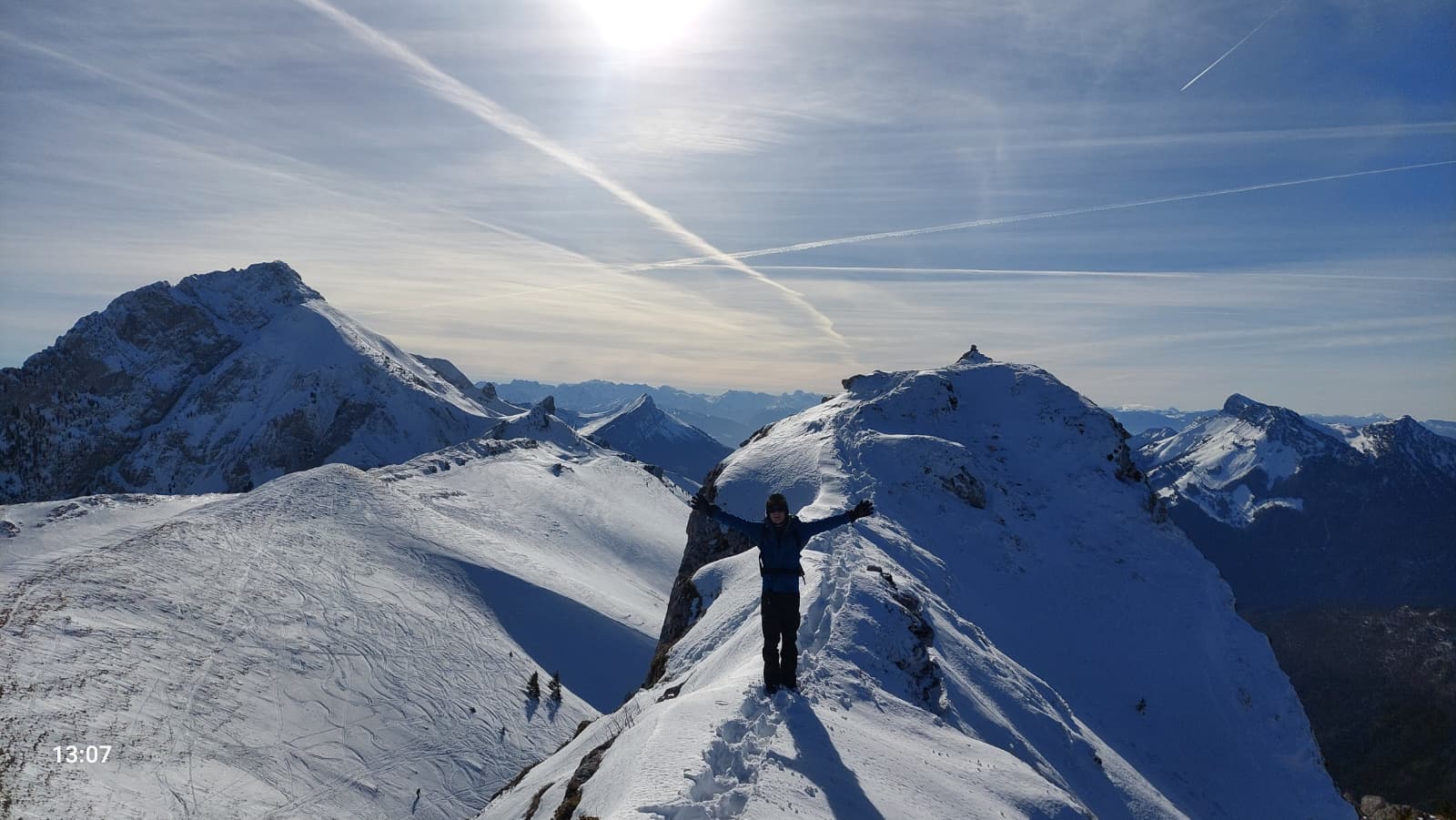 Premier sommet pour le cafiste splitboarder encadré que je suis après 2 sorties où il avait été plus raisonnable de renoncer. La vue est incroyable, notamment sur le Trélod et son fameux couloir qui donne des idées. L’endroit est parfait pour savourer le repas du midi (test concluant de la soupe miso/nouille en thermos !)