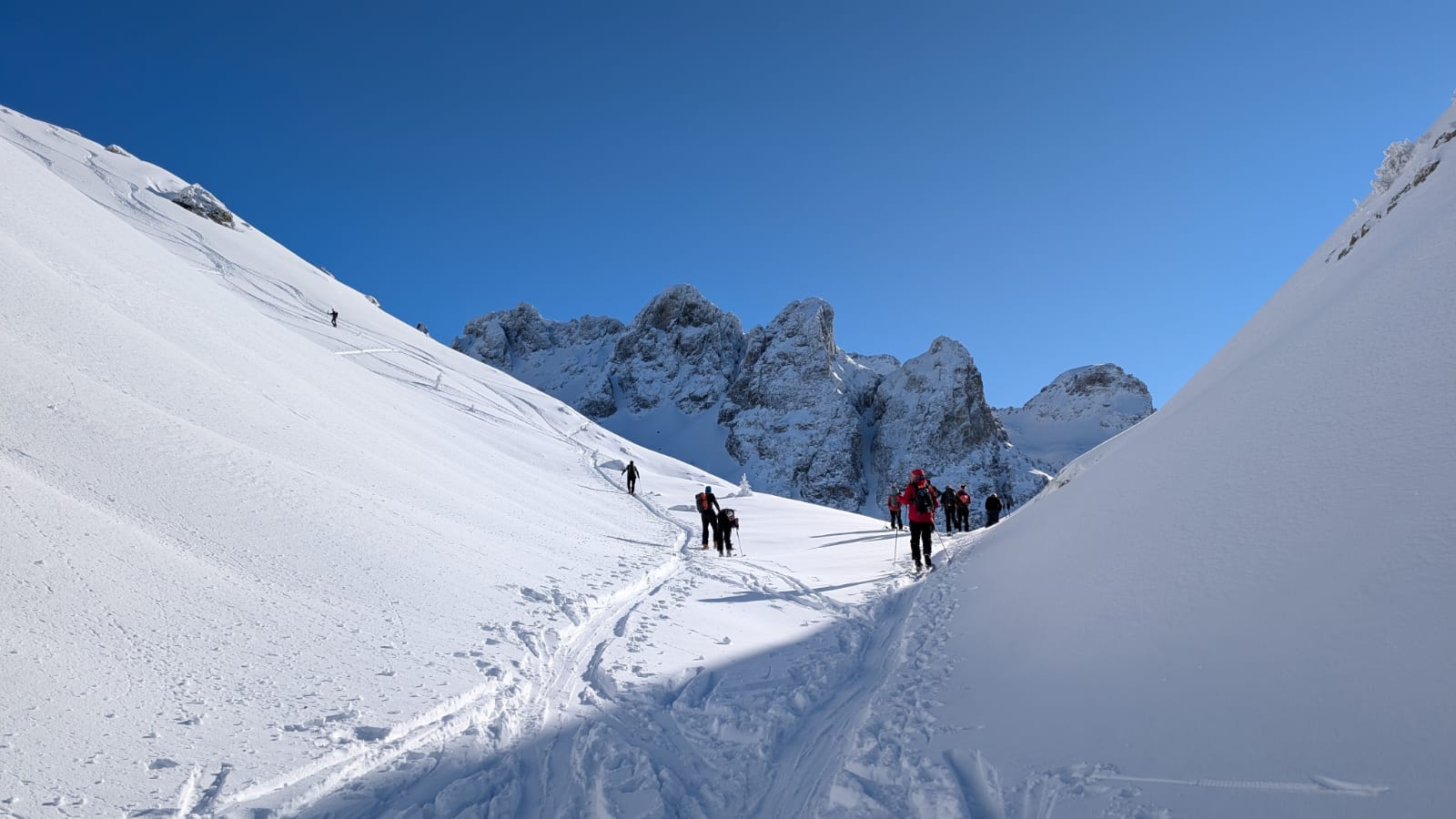 Première étape la brèche Robert Nord au terme d'une montée bien raide, occasion de (ré)viser les différentes modalités de conversion.
