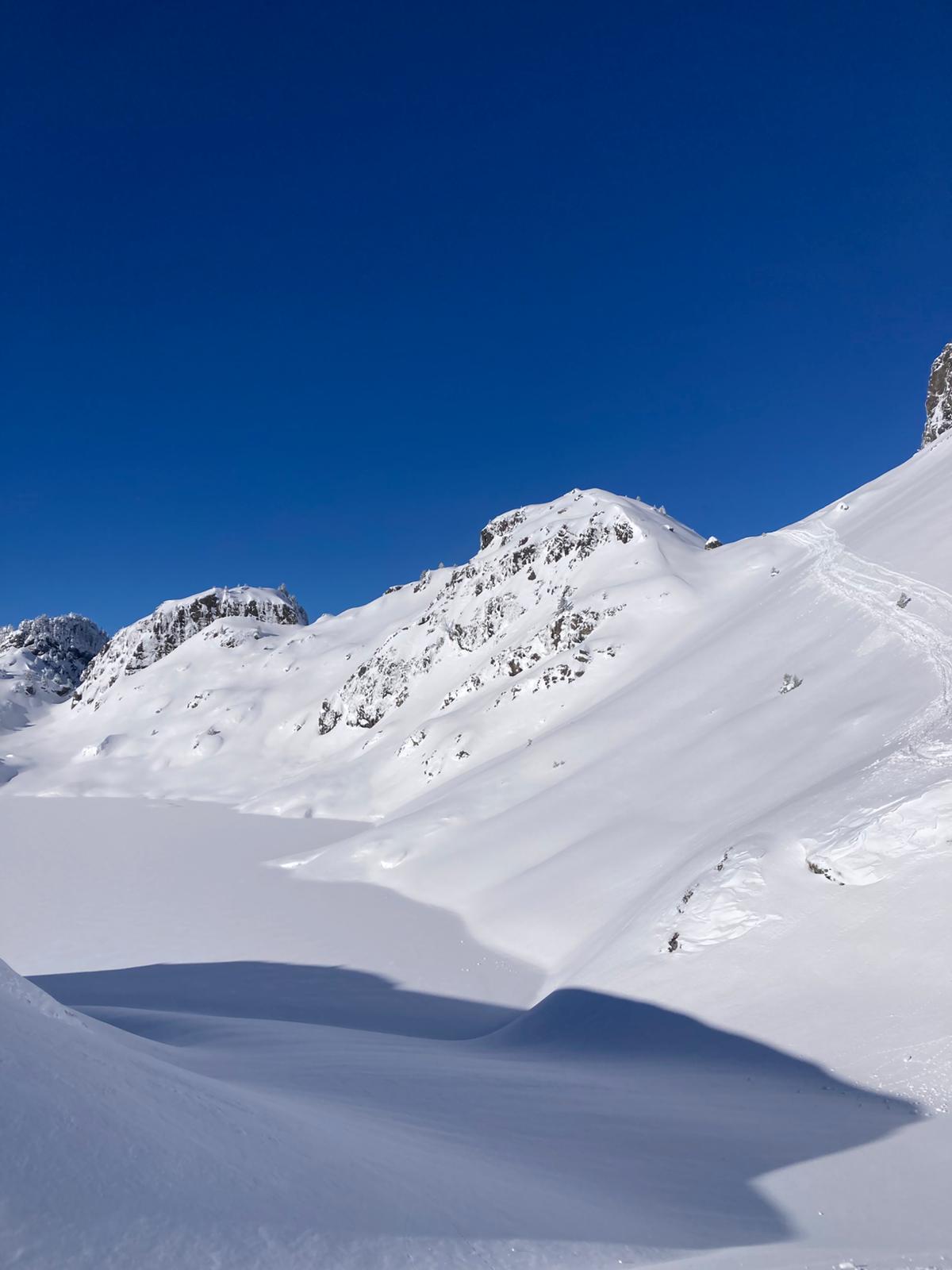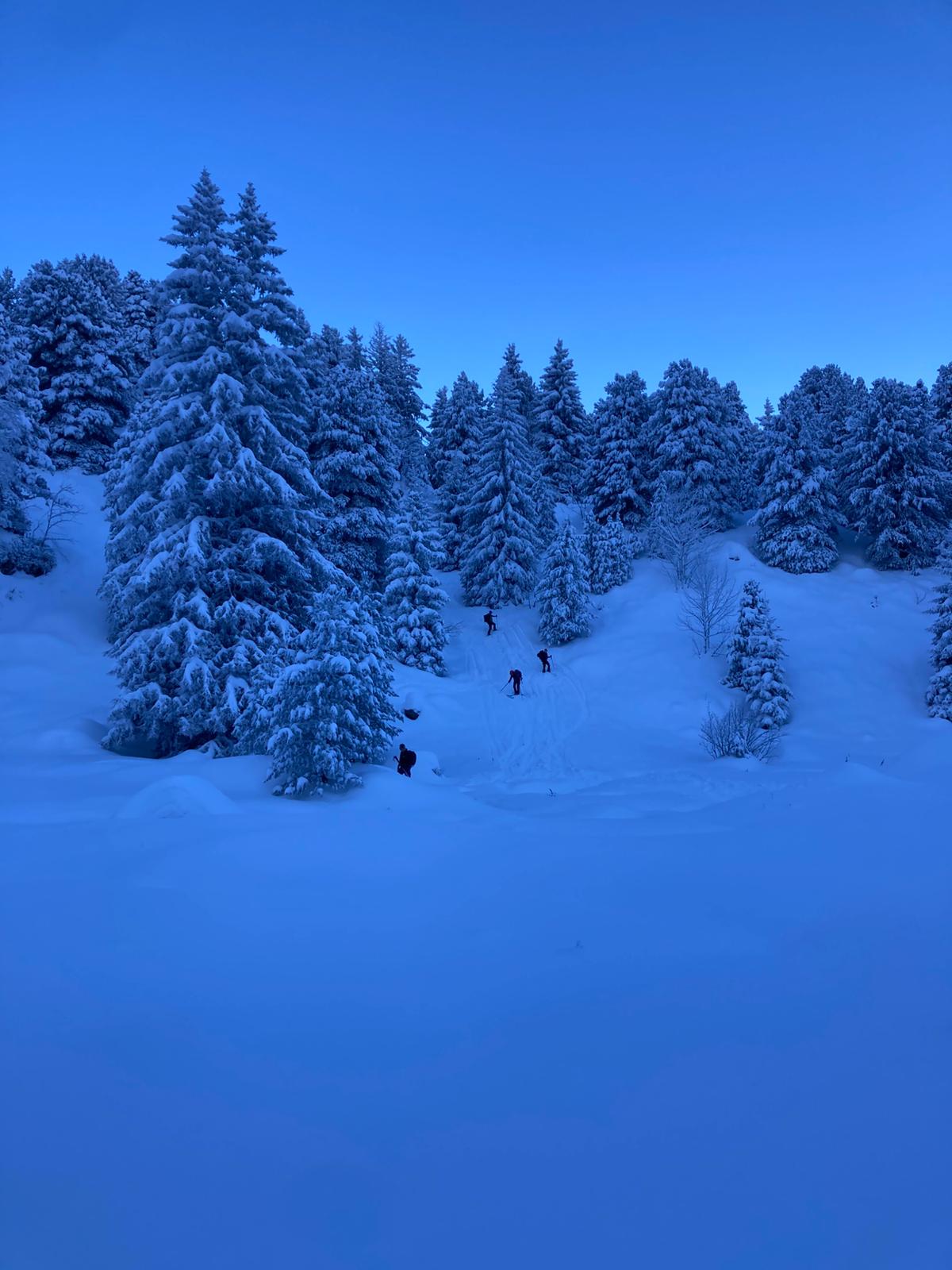 Et maintenant plus qu'à redescendre sur des pistes de poudreuse trafollée ou en bordure ou sous bois. Au choix de chacun selon compétence (parfois limitée !).