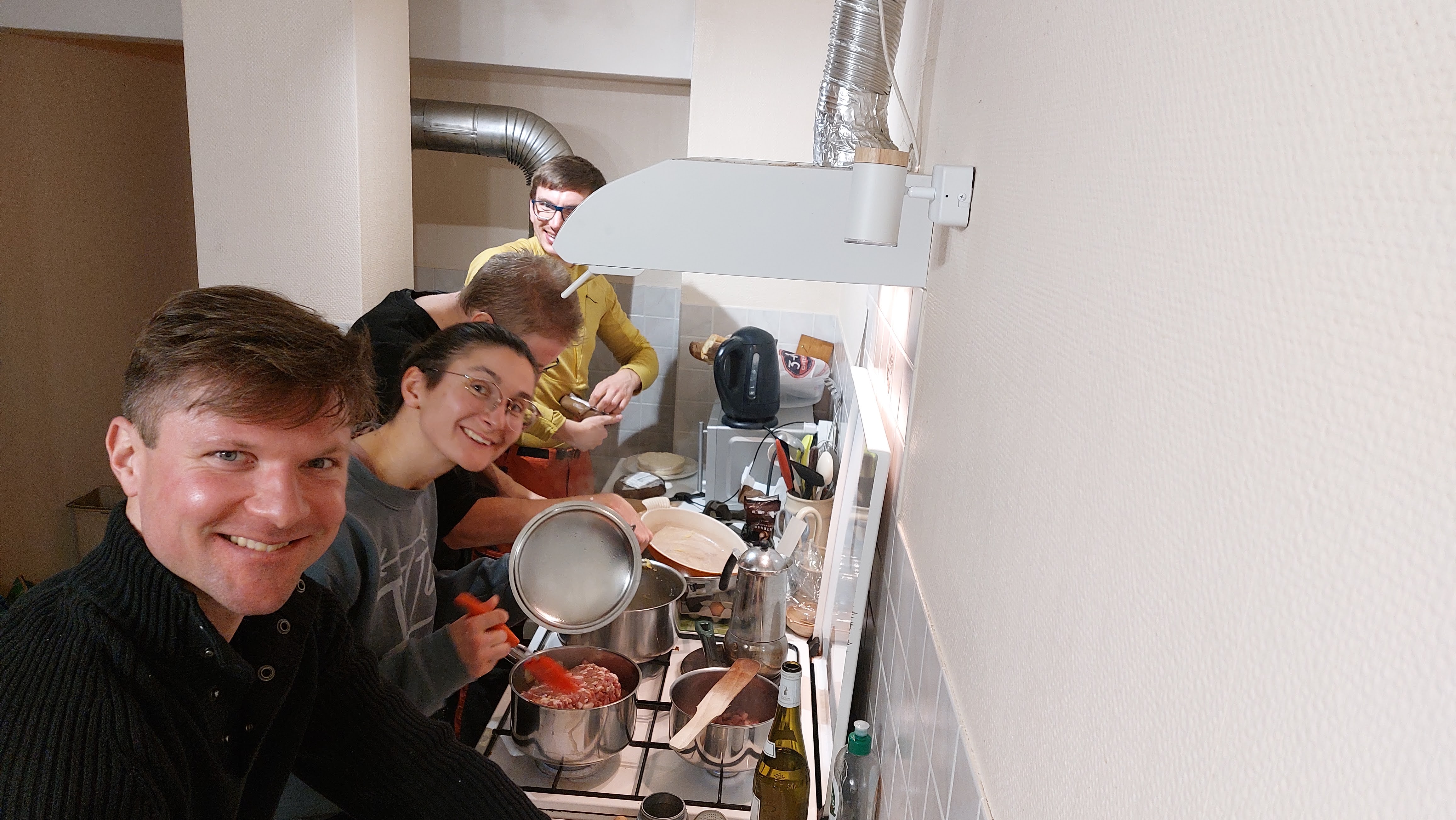 Le goûter/debrief/apéro/CSV commencent pour les deux groupes, et déjà les douches s'enchainent avec les bonnes odeurs dans la cuisine.