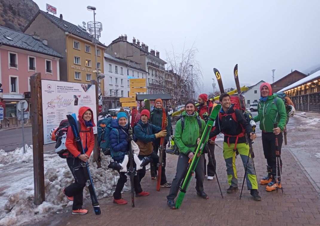 Tout commence de nuit à la gare, où des bruits de bottes de ski annoncent un nouvel épisode des jours heureux. Les "Naturistes" du club alpin de Chambéry sont de nouveau réunis pour le second opus de leur saison nature, direction les Cerces. La team se complète au gré des arrêts en gare de Montmélian, Chamousset. Pour certains, la nuit se termine derrière un buff en remontant la Maurienne, pour d'autres, on repasse en revue les douze mille détails qu'il ne fallait pas oublier, tout en les faisant entrer dans un sac de 10 kilos max. Modane sonne le départ de la première difficulté de la journée, un kilomètre et demi sur trottoir gelé pour rallier la navette de Valfréjus. Vive le multimodal !